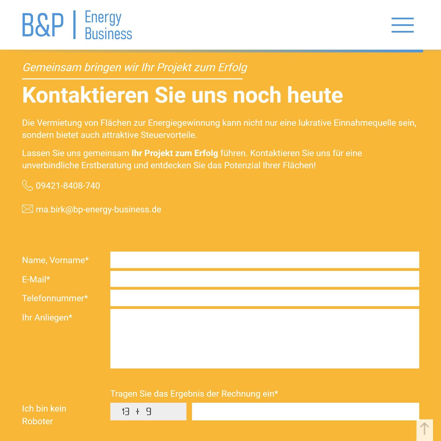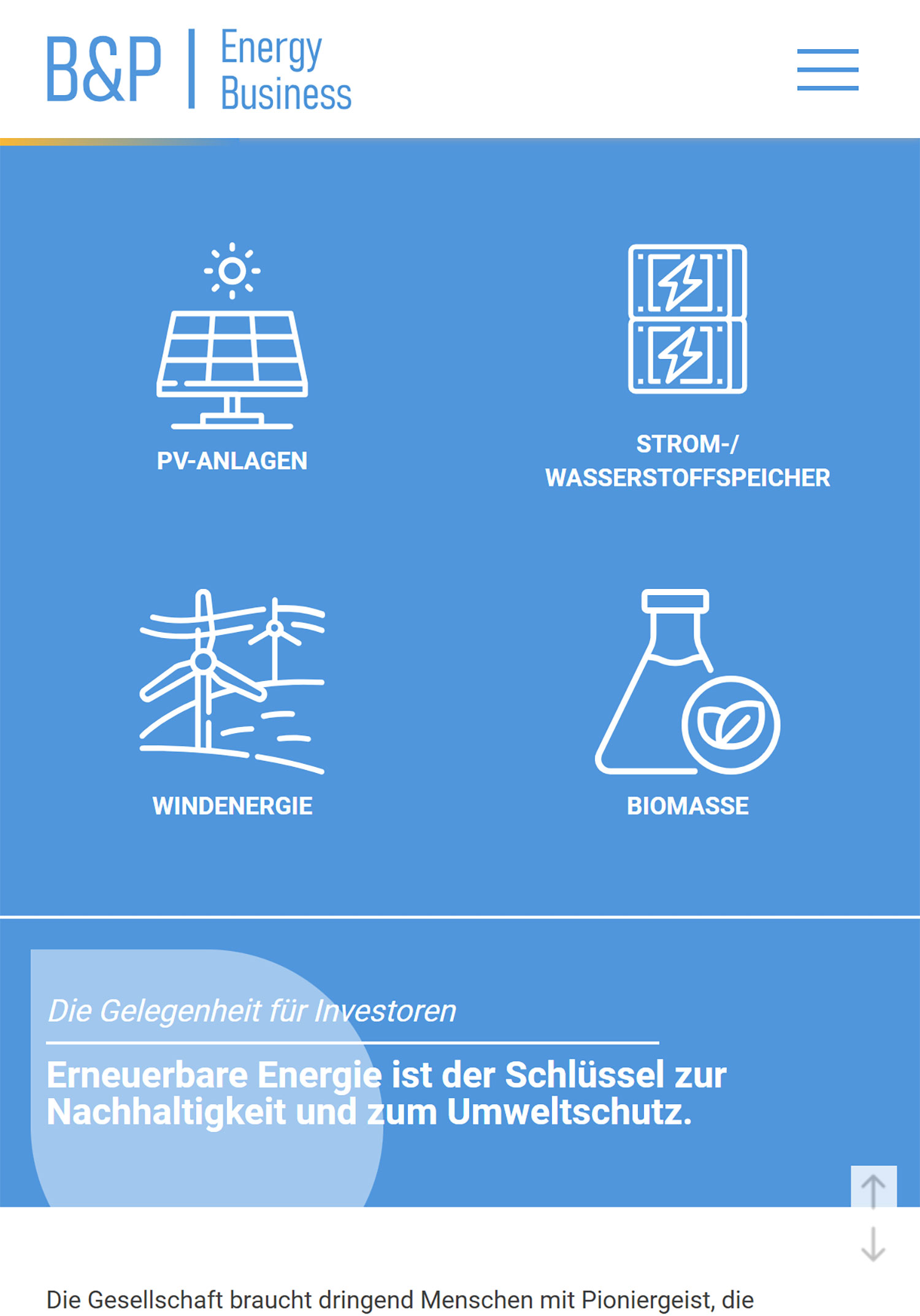 ​Die B&P Energy Business KG bietet steueroptimierte Investitionsmöglichkeiten im Bereich erneuerbarer Energien an. Michael A. Birk unterstützt Investoren dabei, durch Beteiligungen an Photovoltaik- und Windkraftprojekten nachhaltige Renditen zu erzielen und gleichzeitig die Steuerlast zu reduzieren. Zusätzlich bietet B&P Energy Business Energiecoaching an, um Kunden bei der Verbesserung ihrer Energieeffizienz zu beraten.