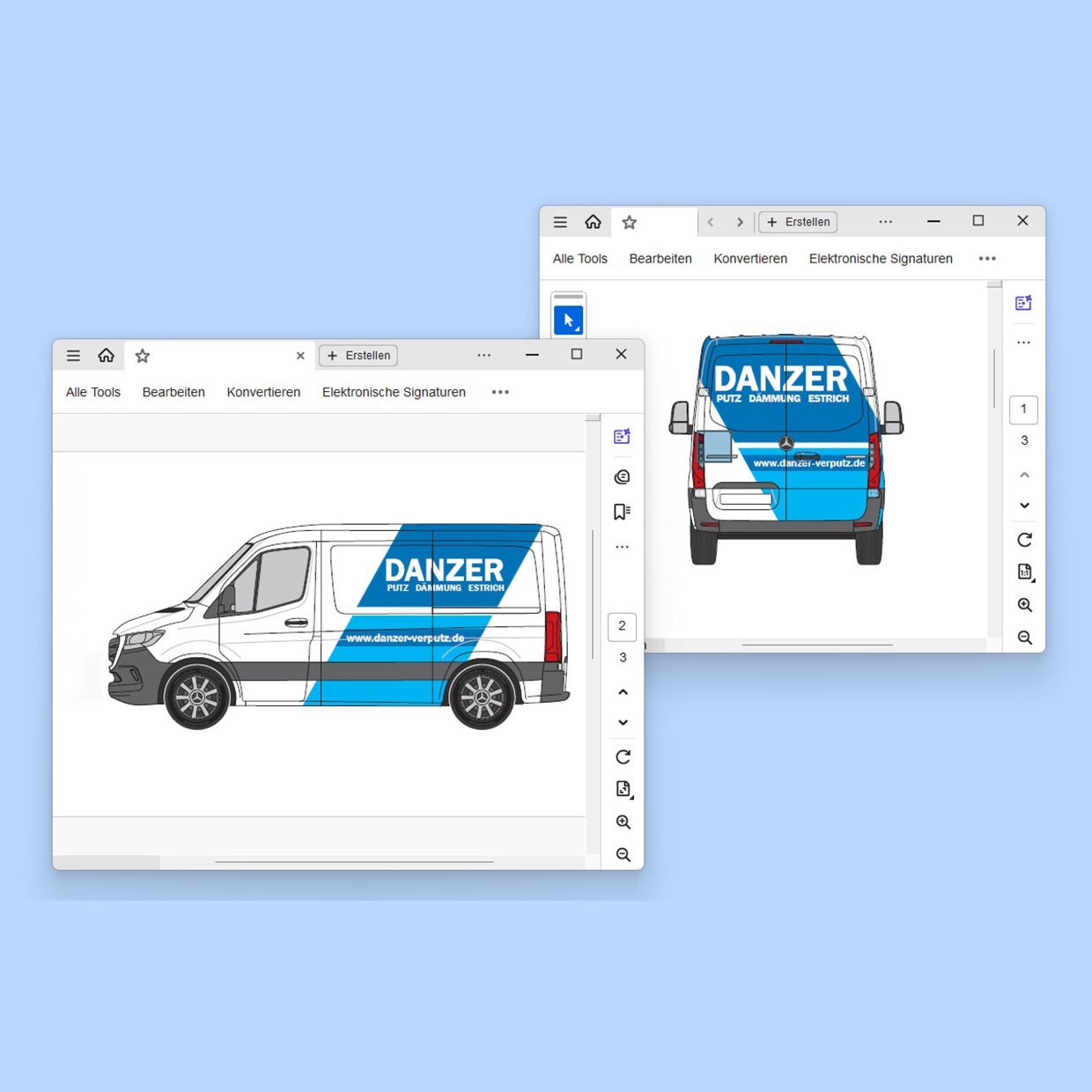 Gestaltung der Fahrzeugbeklebung für die Firmenwagen.