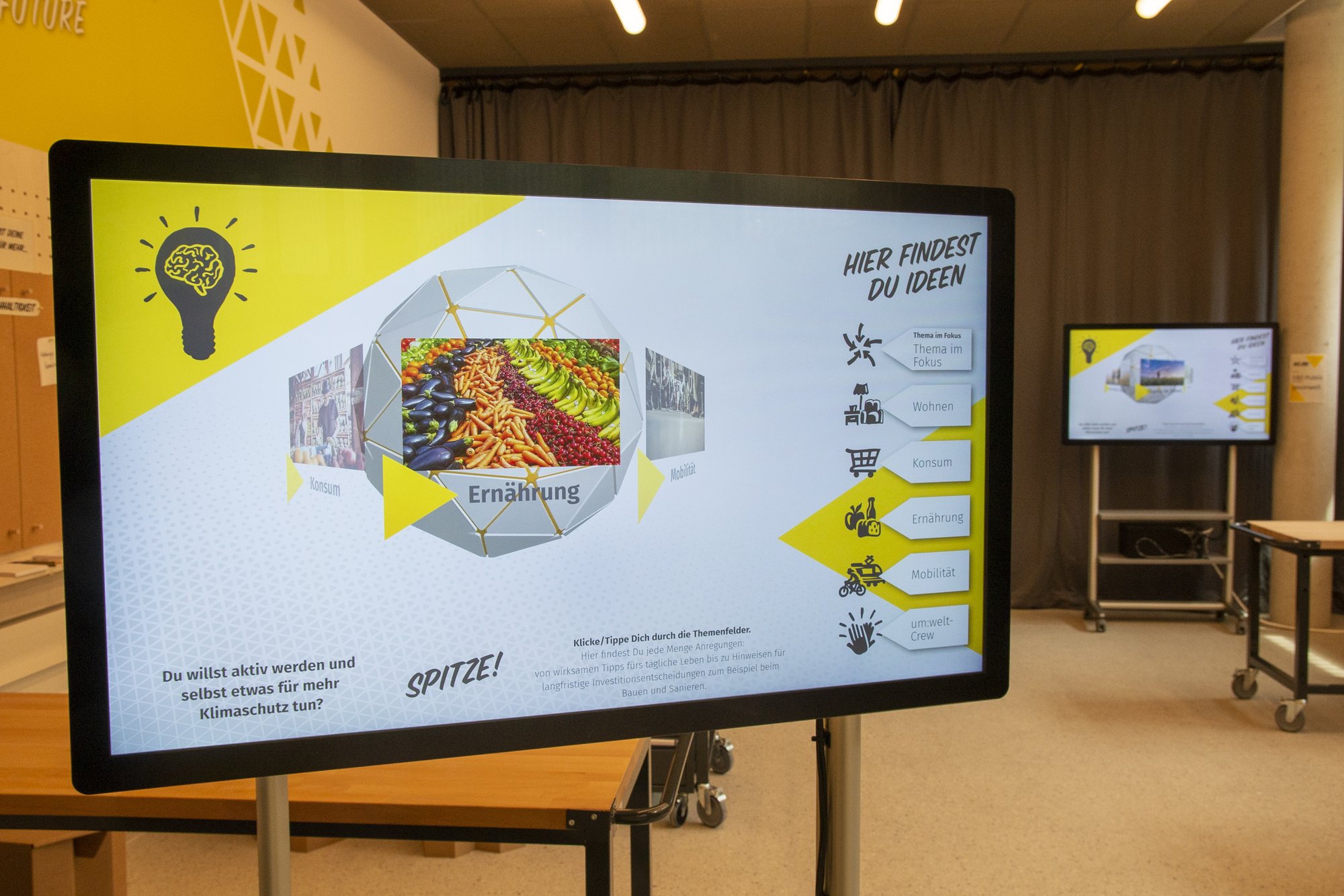 Integriert ist außerdem eine Digital-Signage-Lösung für die um:welt, mit der Besucher*innen des Energie-Bildungszentrums an großen Touchscreens ihren Rundgang durch ergänzende Informationen selbstständig abrunden können.