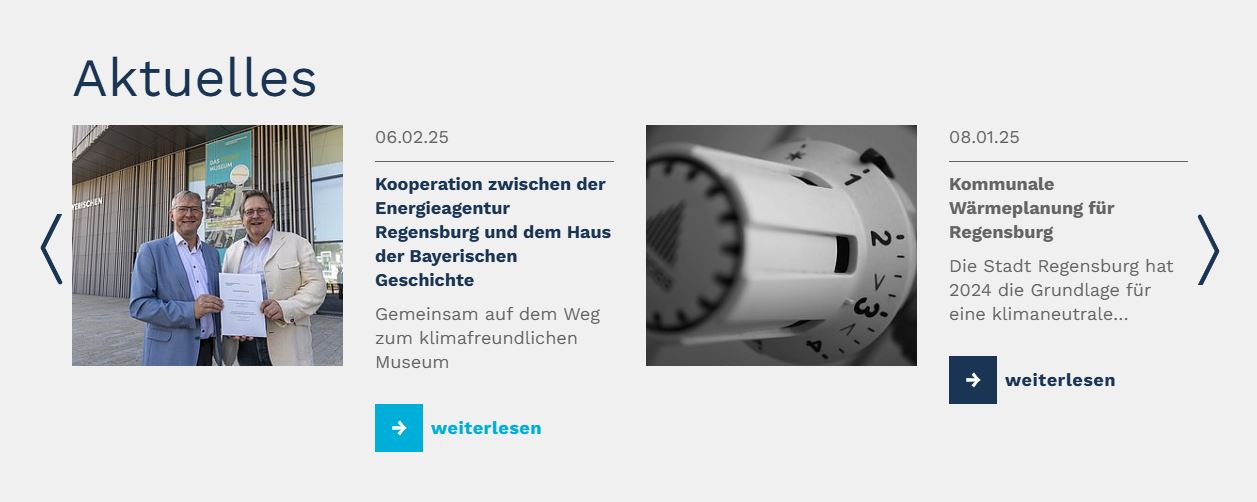 CONCEPTNET hat für die EAR ein Multisite-Websystem auf Basis von TYPO3 geschaffen, in dem der Webauftritt der Energieagentur selbst sowie der von ihr getragenen Projekte betrieben wird. Die Leistungen reichen vom Design über die Programmierung – gemeinsam mit unserem Netzwerkpartner eveca GmbH – bis hin zur laufenden Betreuung im täglichen Betrieb. Das System umfasst die Website der EAR, des Energie-Bildungszentrums um:welt, des Regensburger Greentech Clusters sowie der Wasserstoffallianz Donauregion Regensburg Kelheim.