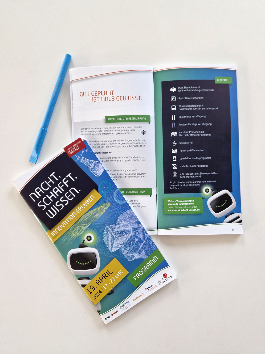 CONCEPTNET betreibt im Auftrag von Stadtmarketing das Informations- und Anmeldeportal von Nacht.Schafft.Wissen.. Besucherinnen und Besucher können sich bequem zu den hunderten Veranstaltungen, Vorträgen, Besichtigungen und Führungen dieser langen Nacht der Wissenschaft anmelden und ihre Teilnahme verwalten. Außerdem erstellen wir Print-Wrbemittel das gedruckte Programmheft und Plakate für Nacht.Schafft.Wissen.