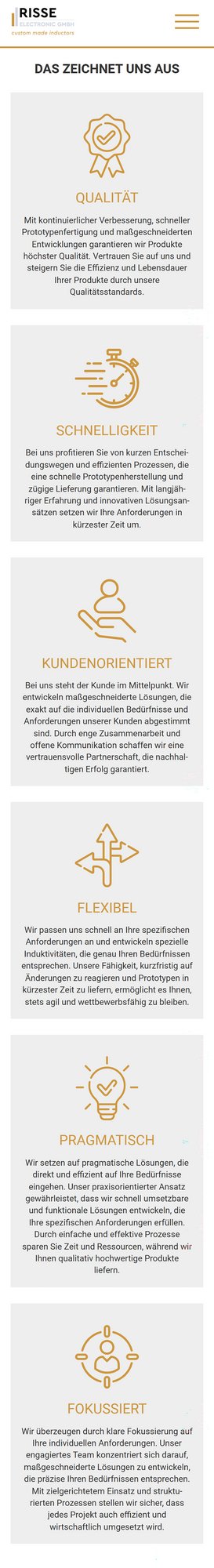 Die RISSE electronic GmbH mit Sitz in Neukirchen bei Straubing ist seit über 40 Jahren auf die Entwicklung und Fertigung kundenspezifischer Induktivitäten spezialisiert. Im Fokus stehen hochwertige Produkte wie E-, RM-, U- und Ringkerne, Planar-Bauformen, Backlack-Spulen und Speziallösungen. Mit hoher Präzision, Flexibilität und technischer Expertise bietet RISSE electronic individuelle Lösungen – von der Entwicklung bis zur Serienfertigung.