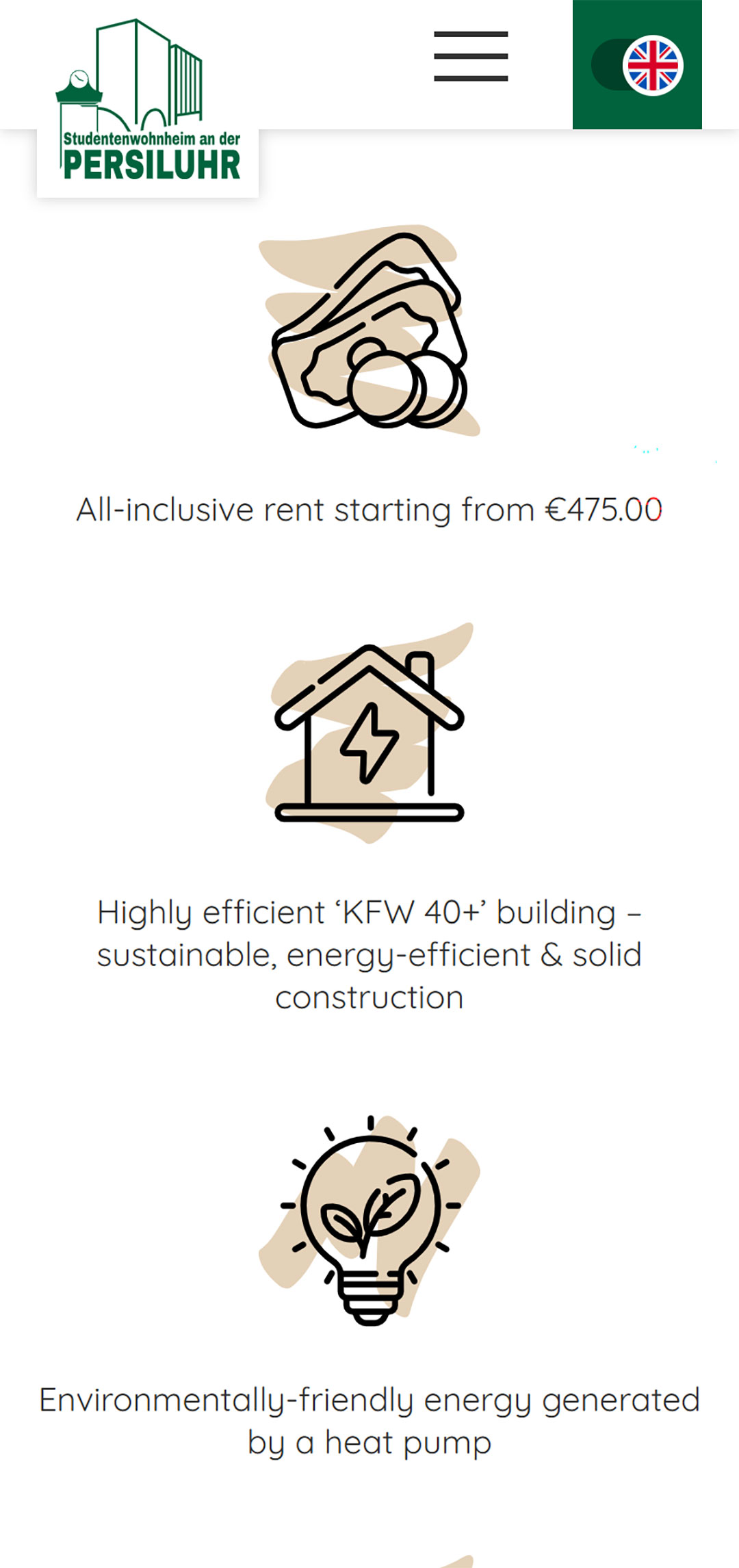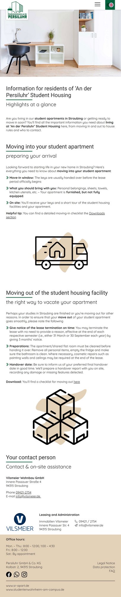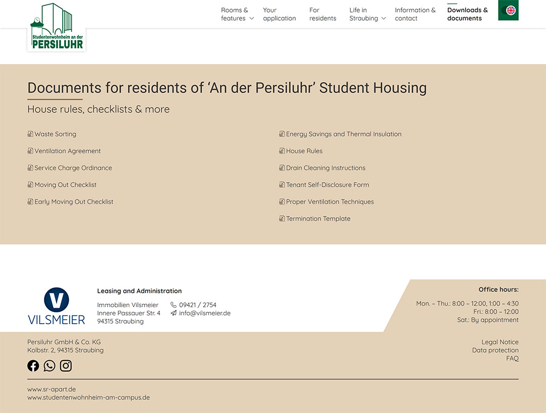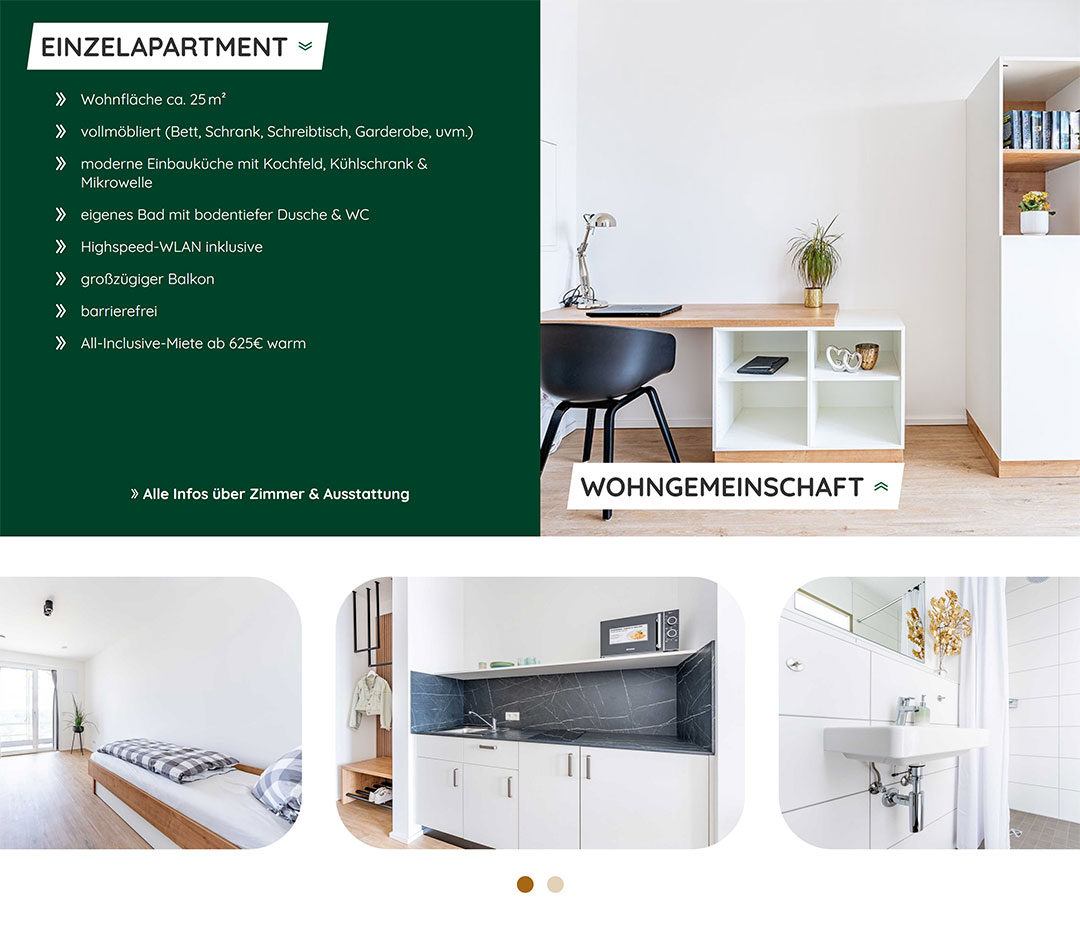 Das Studentenwohnheim an der Persiluhr in Straubing bietet moderne, voll möblierte Apartments und Wohngemeinschaften für Studierende und Auszubildende. Die zentral gelegene Wohnanlage überzeugt mit hochwertiger Ausstattung, eigener Küchenzeile, Bad, Balkon und Highspeed-WLAN. Mit rund 68 Apartments und fünf WGs verbindet das Wohnheim Komfort, modernes Design und kurze Wege zum Campus.